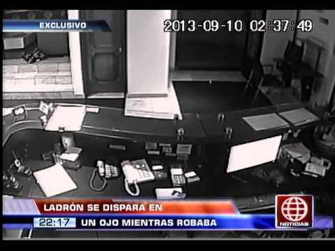 En el video se observa al asaltante Kenyo Antonio Córdova Ruiz, de 19 años, quien perdió el ojo derecho, bastante alterado, penetró al establecimiento con u n revolver 9 milímetros en la mano y de inmediato bajo amenaza le exigió a la recepcionista que le entregara todo el dinero que había en la caja.
